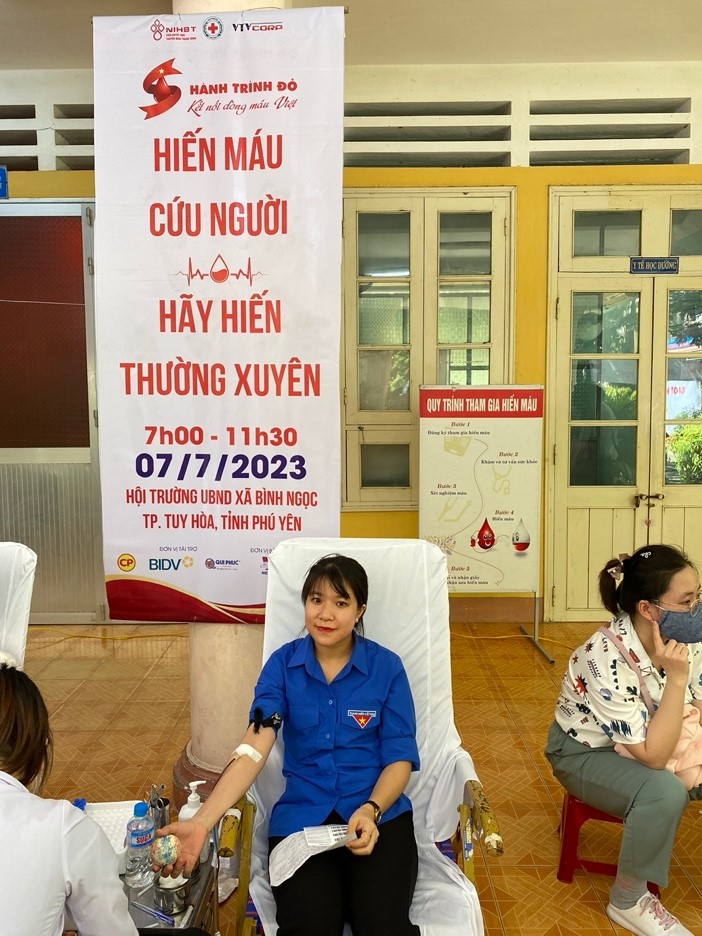 Cán bộ viên chức, người lao động Trung tâm Y tế thành phố Tuy Hoà tham gia hiến máu tình nguyện hè năm 2023