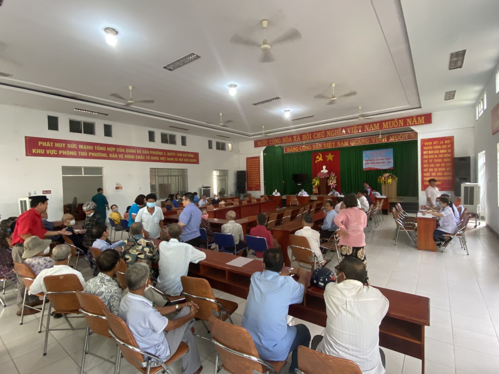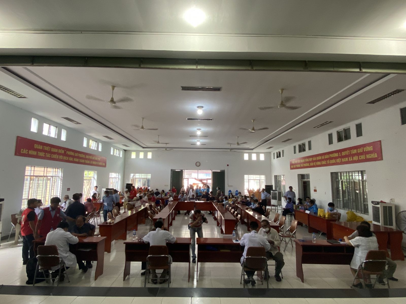 Sáng ngày 07/6/2023, tại hội trường UBND phường 3, Trung tâm Y tế thành phố phối hợp với Hội chữ thập đỏ, Hội LHPN, Hội Đông Y, BCH Quân Sự tổ chức khám cấp phát thuốc miễn phí cho 120 người dân có hoàn cảnh khó khăn, gia đình chính sách, nạn nhân chất độc màu da cam… trên địa bàn thành phố.