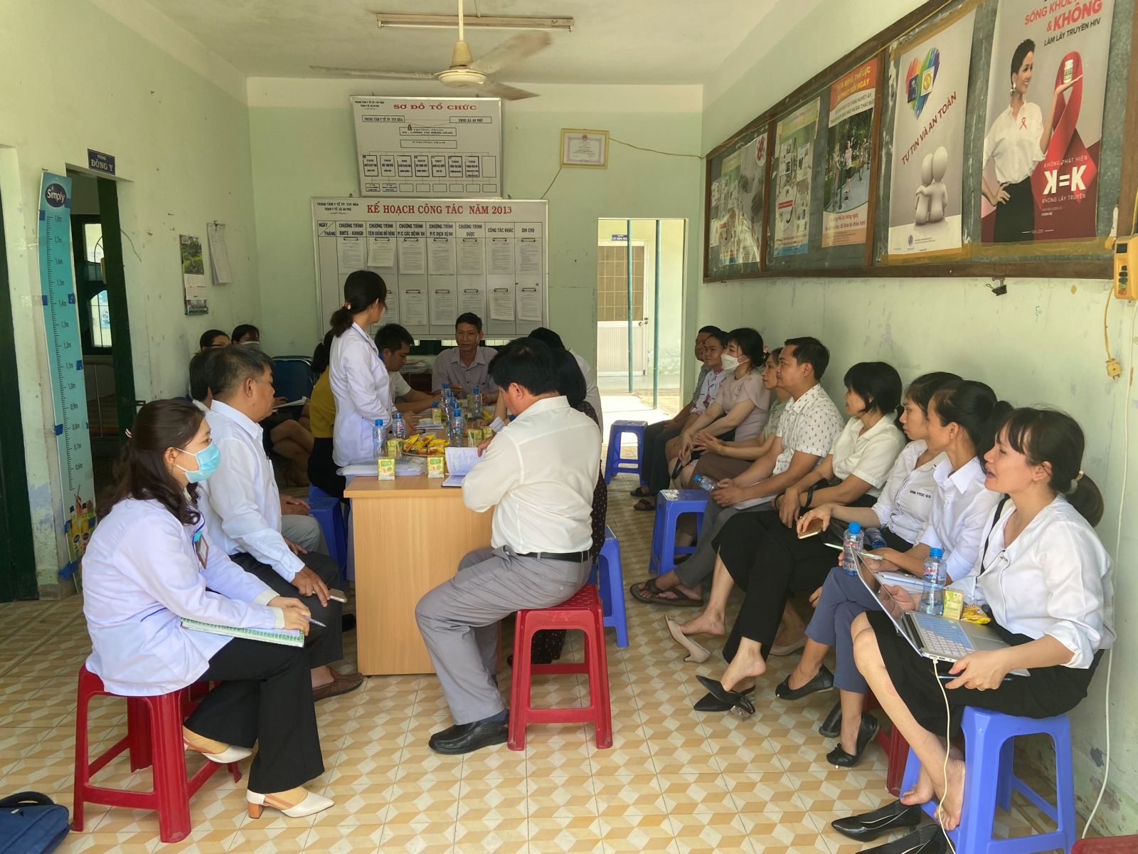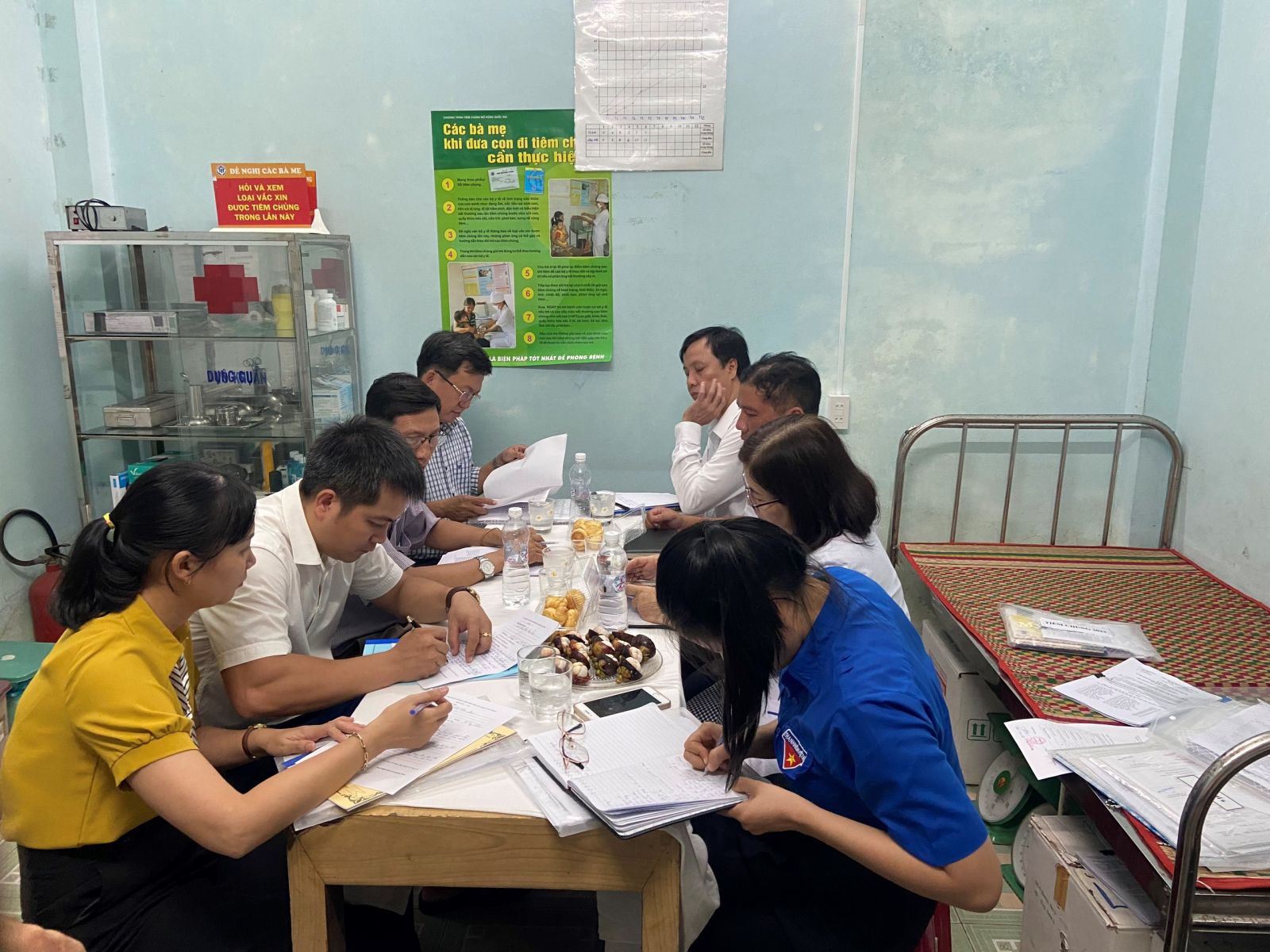 Trong quá trình làm việc, Đoàn công tác đã tiến hành khảo sát, hỗ trợ và phúc tra kết quả tự chấm điểm, đánh giá của từng đơn vị dựa theo Quyết định số 1300/QĐ-BYT ban hành Bộ Tiêu chí Quốc gia về y tế xã giai đoạn đến 2030.