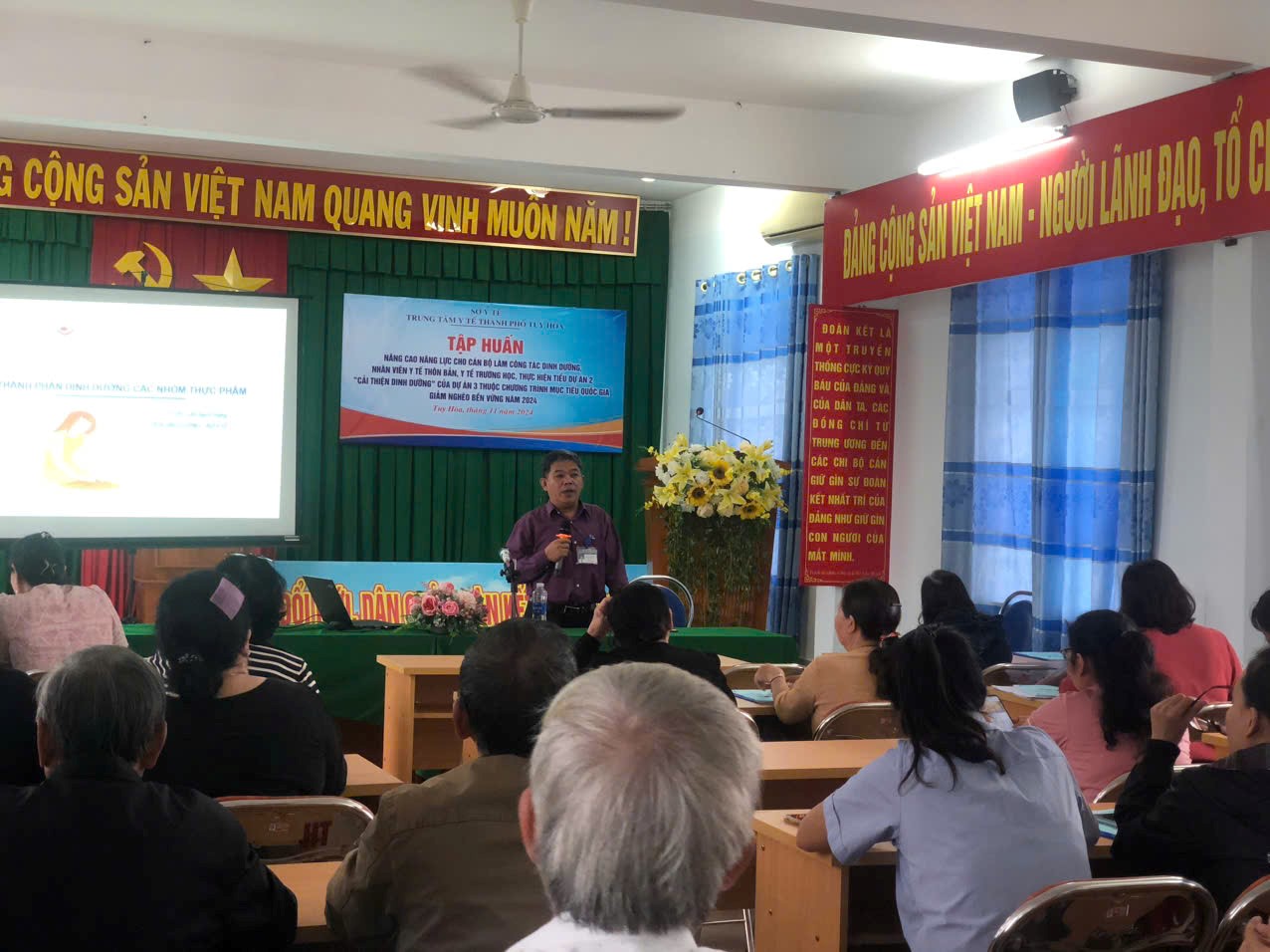 Ngày 26-27/11/2024, Trung tâm Y tế thành phố Tuy Hòa tổ chức lớp tập huấn nâng cao năng lực cho cán bộ làm công tác dinh dưỡng, nhân viên y tế thôn bản, y tế trường học, thực hiện Tiểu dự án 2 “Cải thiện dinh dưỡng” của Dự án 3 thuộc Chương trình mục tiêu quốc gia giảm nghèo bền vững năm 2024