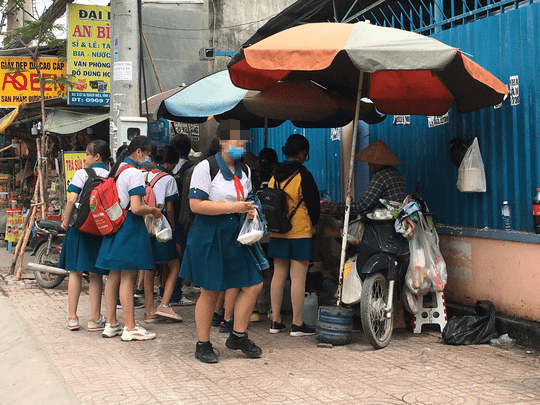 Vào giờ tan học, nhiều hàng rong di động bán đồ ăn vặt lại tụ họp trước một số trường học để phục vụ cho học sinh. Trước cổng và khu vực hai bên hàng rào cổng trường có khoảng 5 đến 7 hàng rong bán hàng thường xuyên vào trước mỗi buổi học và giờ tan trường. Đó là cảnh tụ tập mua bán tấp nập, chen lấn gây mất an toàn cho các em học sinh và phụ huynh đưa đón con em mình.